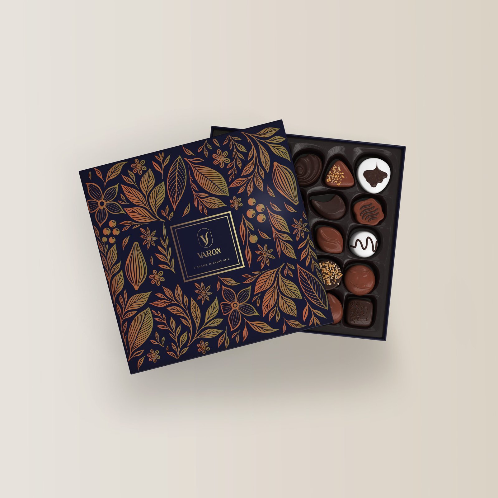 A luxurious mix of smooth ganache, crunchy nuts, creamy centers, and silky caramel.