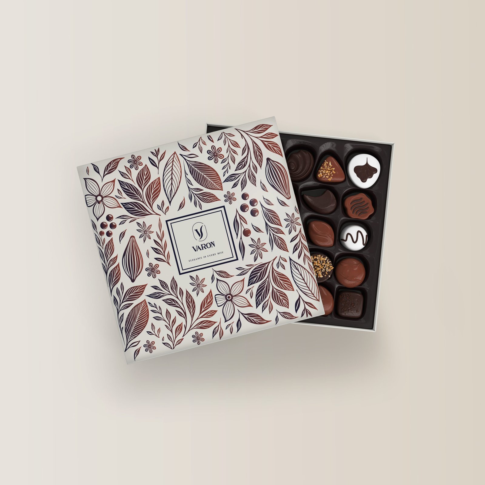 A refined blend of dark and milk chocolates with nutty notes, praline, and ganache.